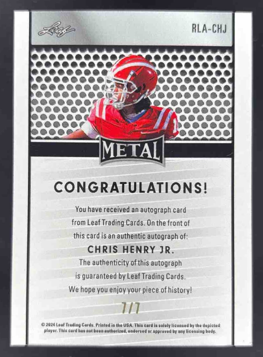 2024 Leaf Metal Green Mojo Autograph #RLA-CHJ Chris Henry Jr Auto /7