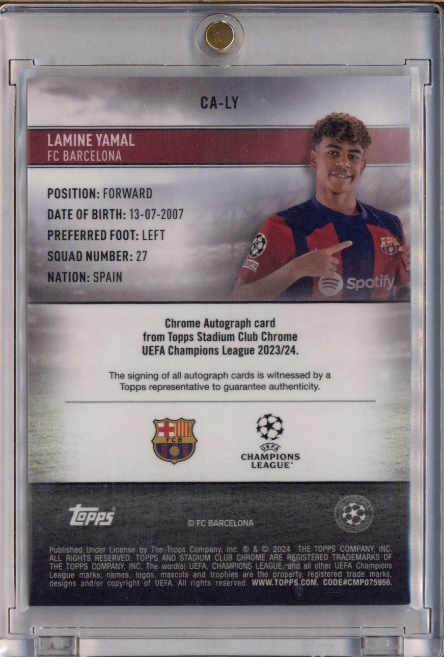 2023-24 Stadium Club Chrome UEFA Blue Wave Lamine Yamal RC Auto /75