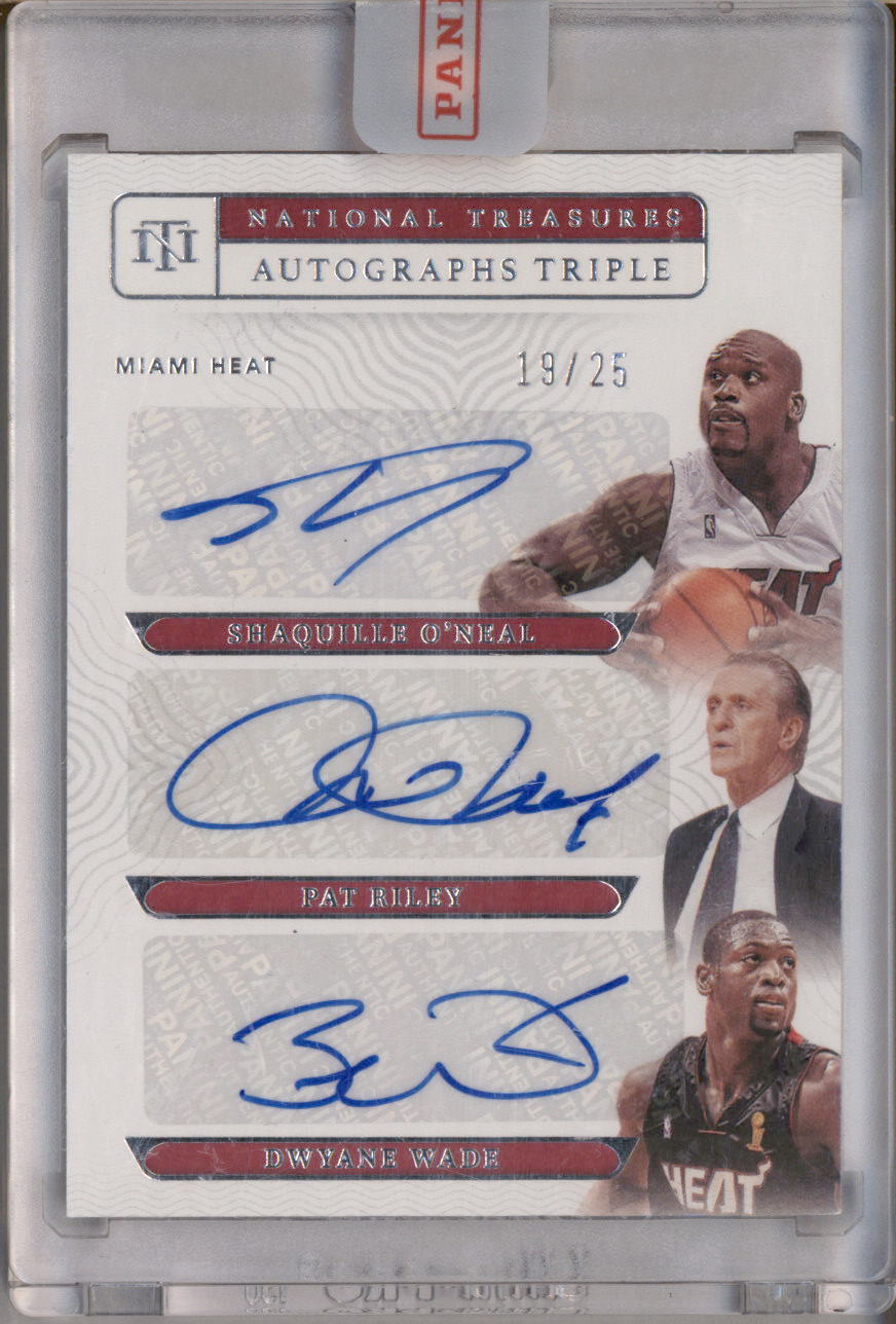 2021 National Treasures Triple Auto Dwyane Wade Pat Riley Shaquille O'Neal /25