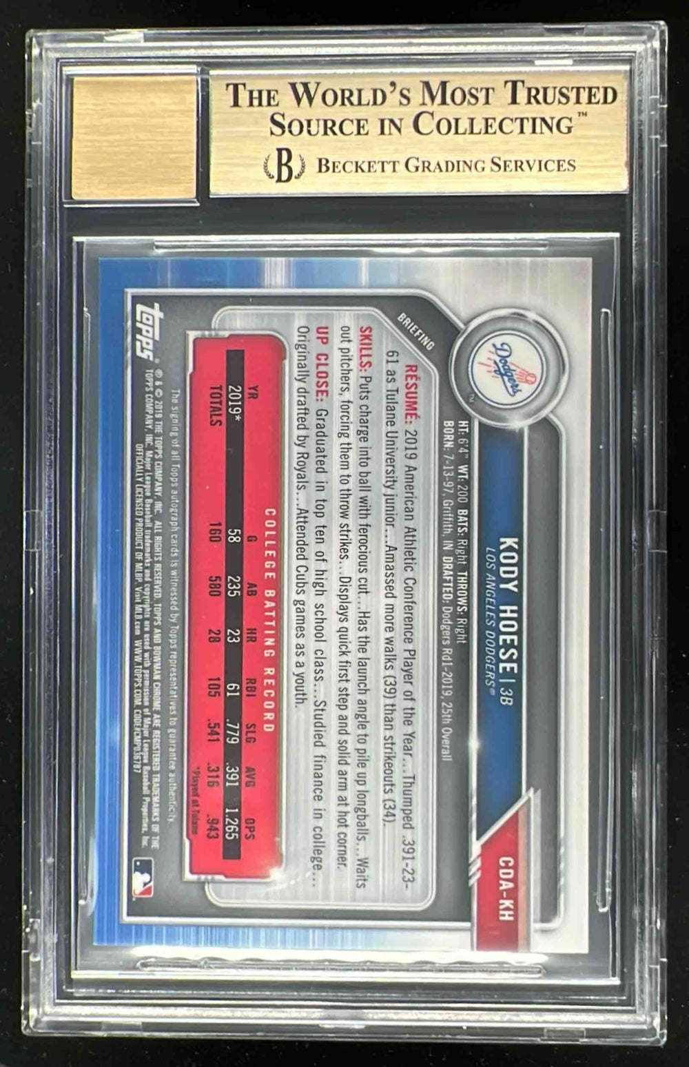 2019 Bowman Draft Chrome Green Refractor #CDA-KH Kody Hoese Auto /99 BGS 9.5