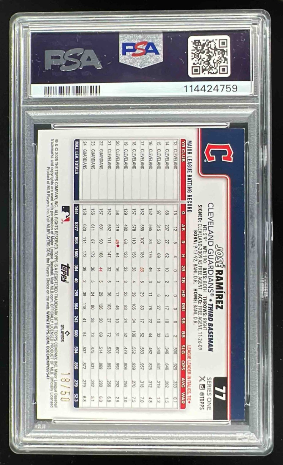2025 Topps Gold Holo Foil #77 Jose Ramirez /50 PSA 8