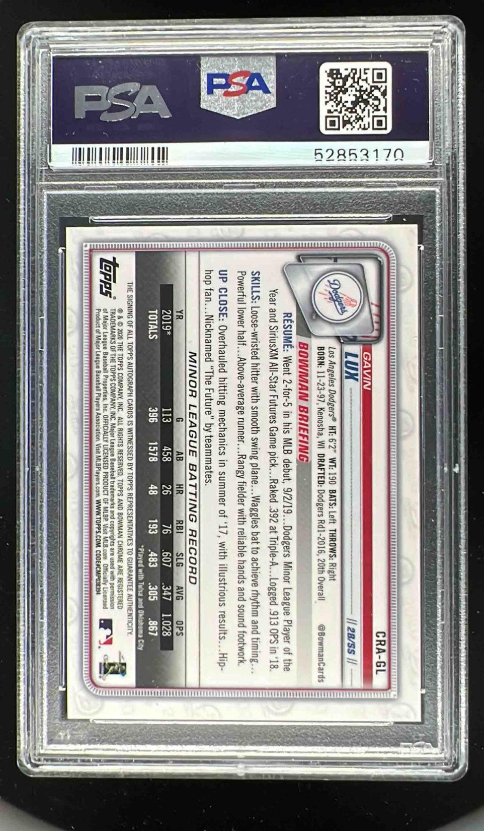 2020 Bowman Chrome Rookie Autographs #CRA-GL Gavin Lux Autograph RC Auto PSA 9