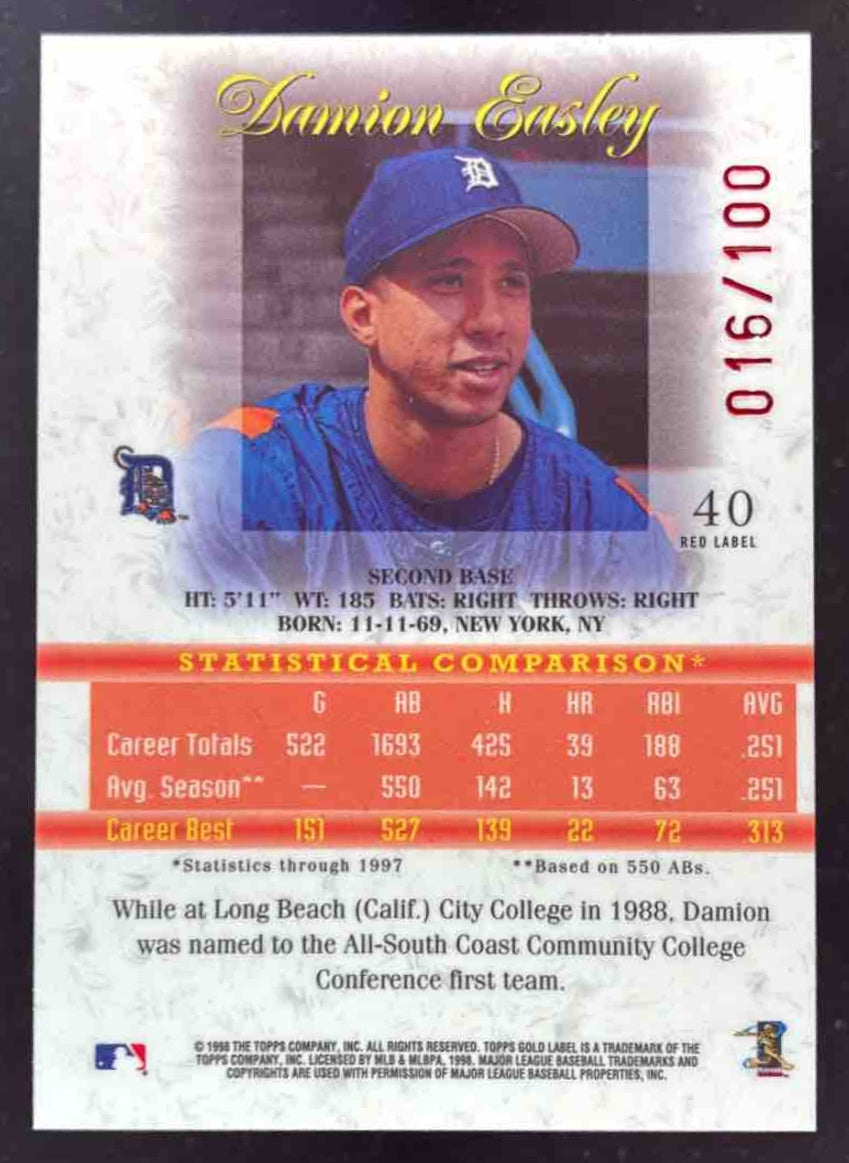 1998 Topps Gold Label Class 1 Red Label #40 Damion Easley /100