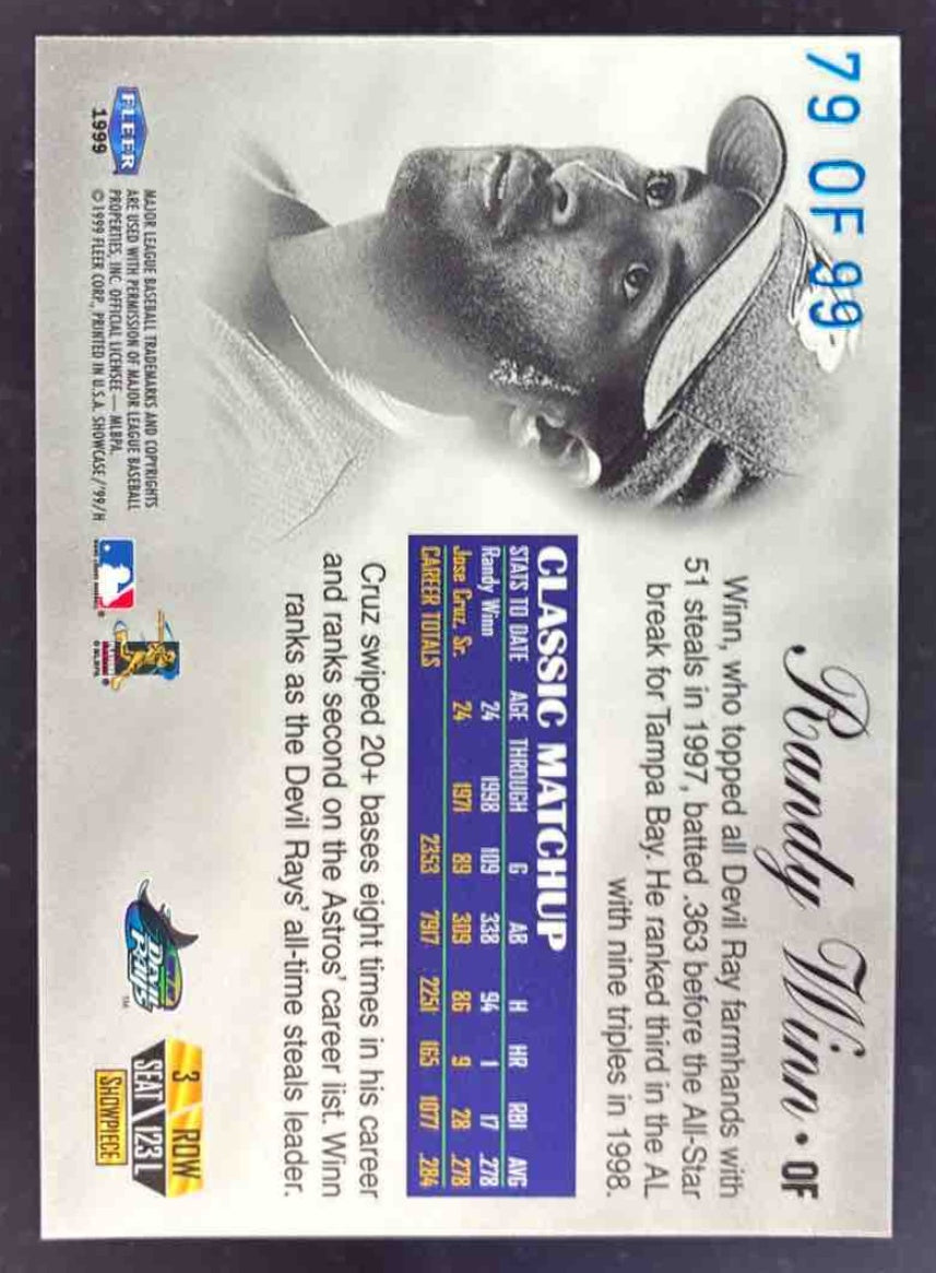 1999 Fleer Flair Showcase Legacy Collection Row 3 #123L Randy Winn /99