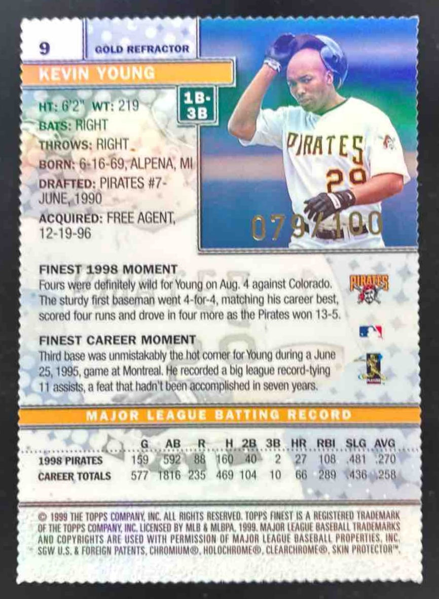 1999 Topps Finest Gold Refractors #9 Kevin Young /100