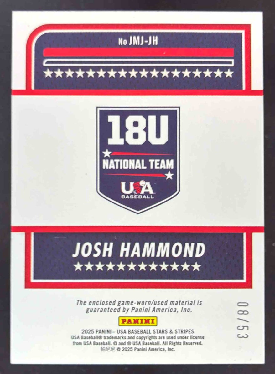 2025 USA Stars & Stripes Jumbo Materials Jersey Prime #29 Josh Hammond /53