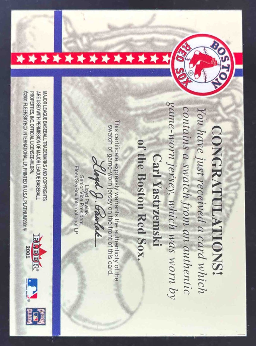 2001 Fleer Platinum National Patch Time #NNO Carl Yastrzemski