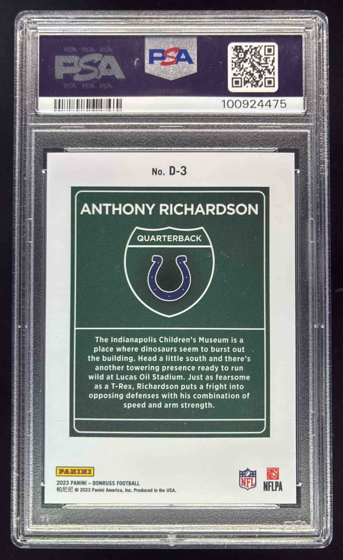 2023 Panini Donruss Downtown! SSP #D-3 Anthony Richardson RC PSA 9