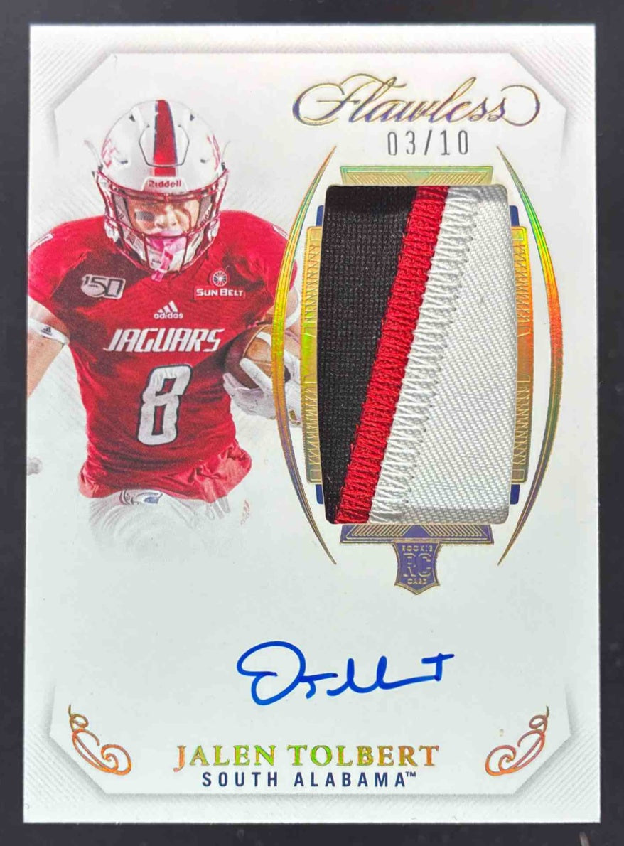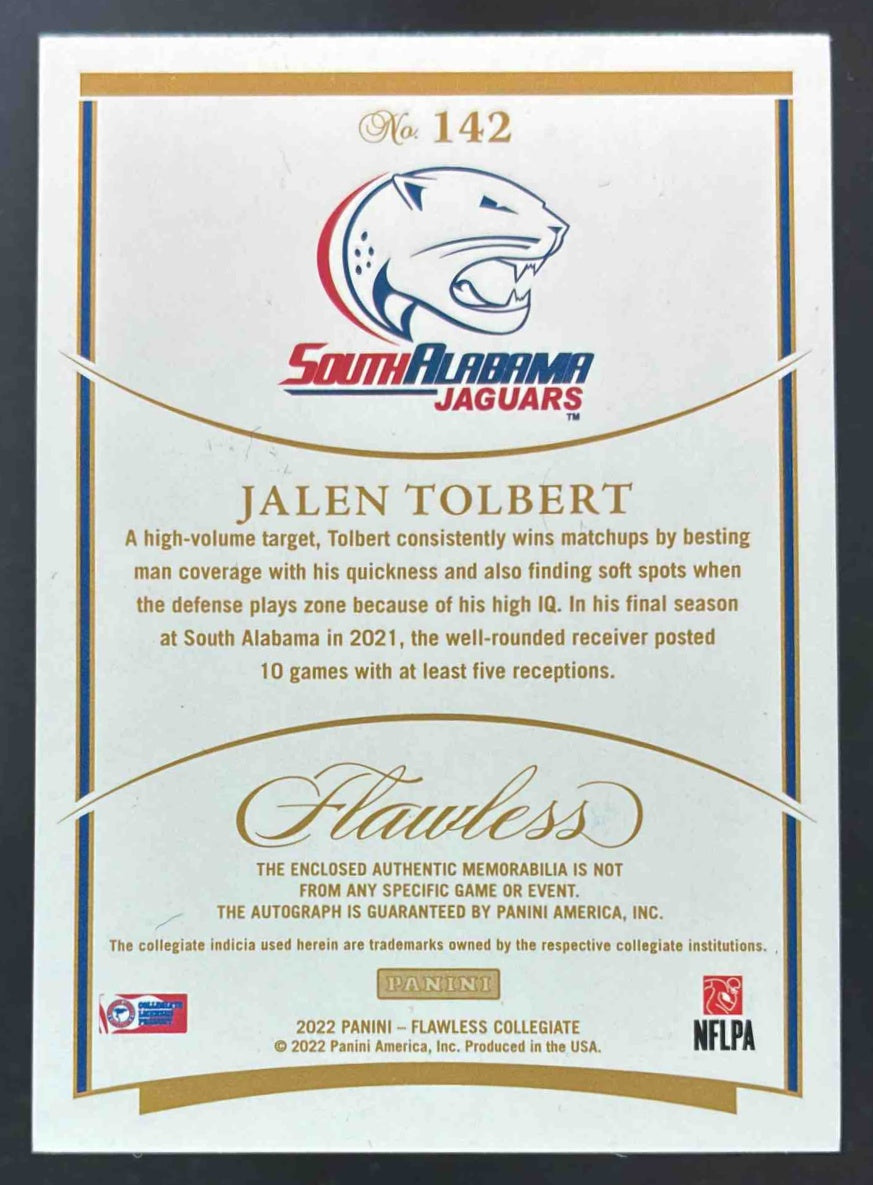 2022 Flawless Collegiate Rookie Patch Vertical Gold Jalen Tolbert RC Auto /10