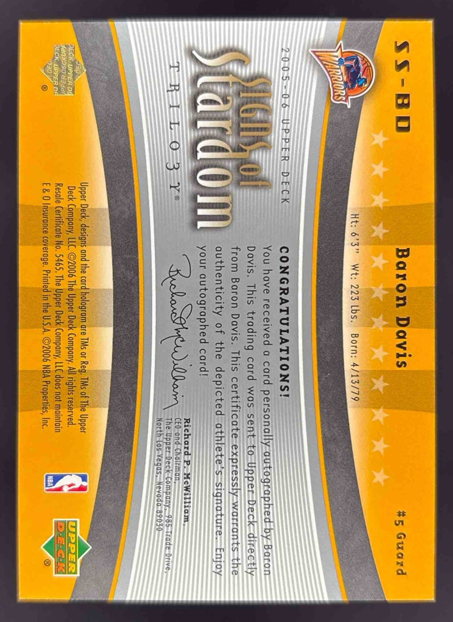 2005-06 Upper Deck Trilogy Signs of Stardom #SS-BD Baron Davis Auto