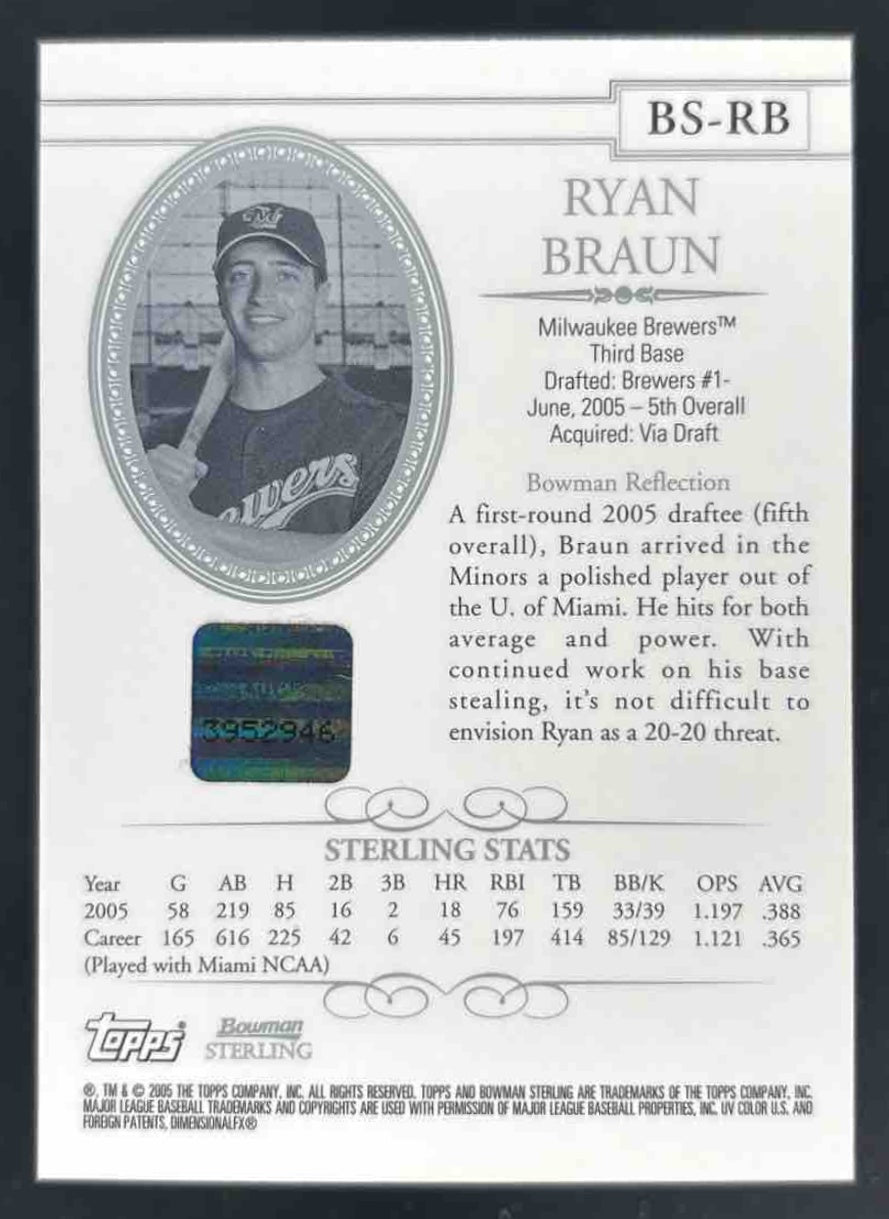 2005 Bowman Sterling #BS-RB Ryan Braun Autograph RC Auto