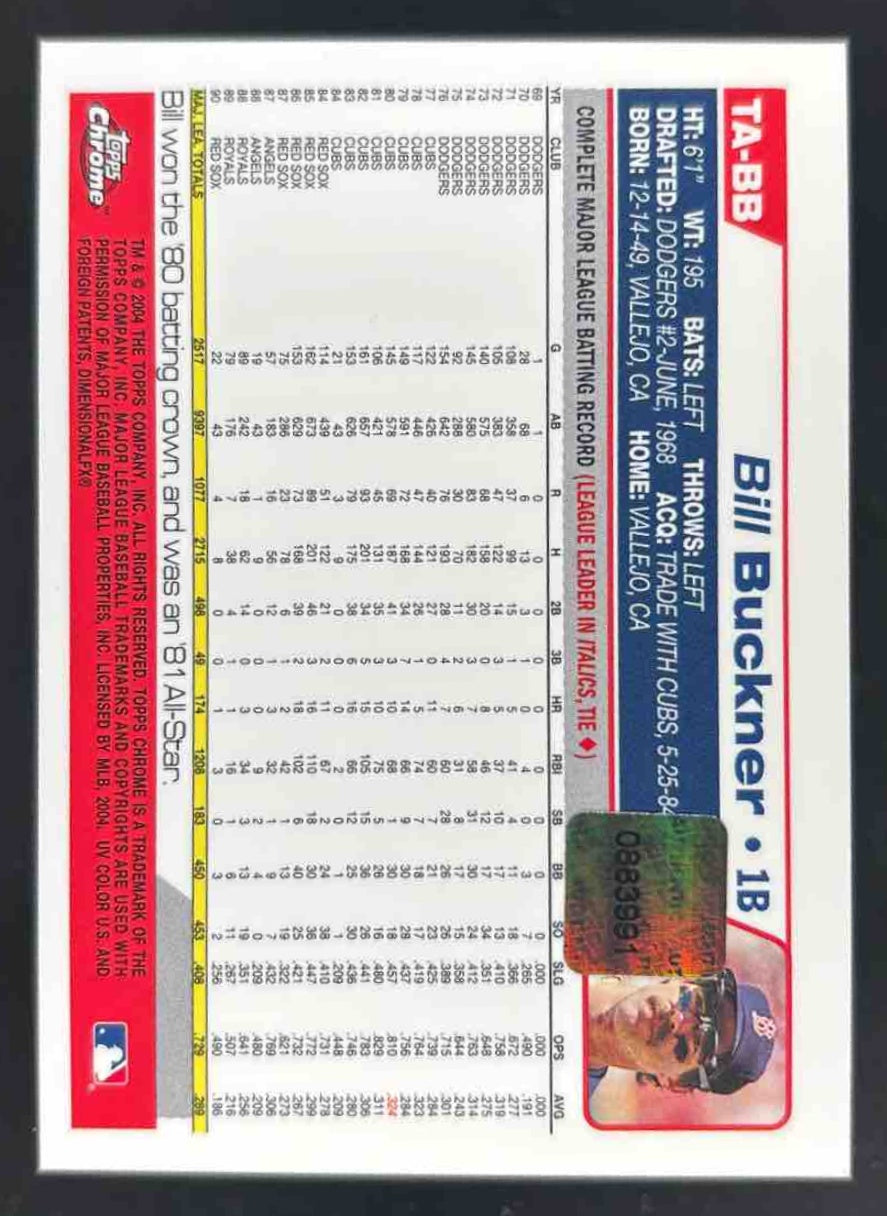 2004 Topps Retired Signature Edition Autographs #TA-BB Bill Buckner Auto