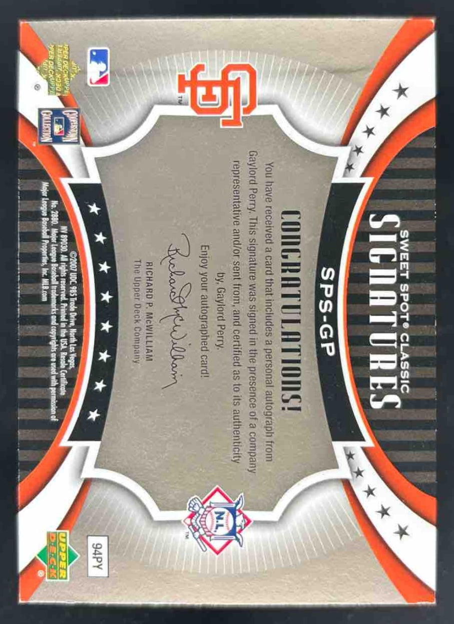 2007 Sweet Spot Classic Signatures Barrel Blue Ink #SPSGP Gaylord Perry Auto /75