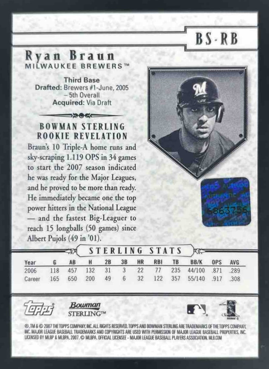 2007 Bowman Sterling #BS-RB Ryan Braun Autograph Auto