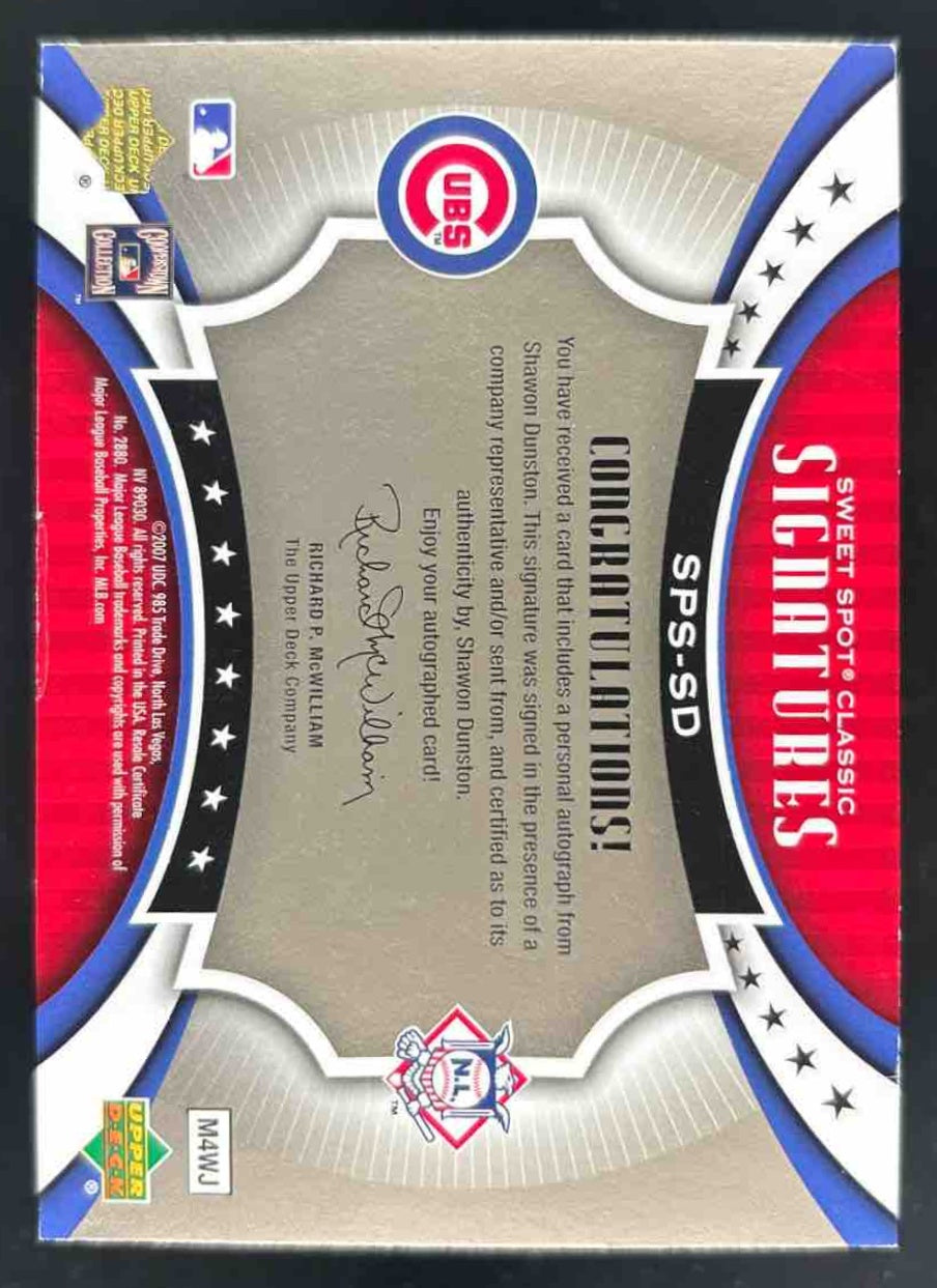2007 Sweet Spot Classic Grey Stitch Blue Ink #SPS-SD Shawon Dunston Auto /12
