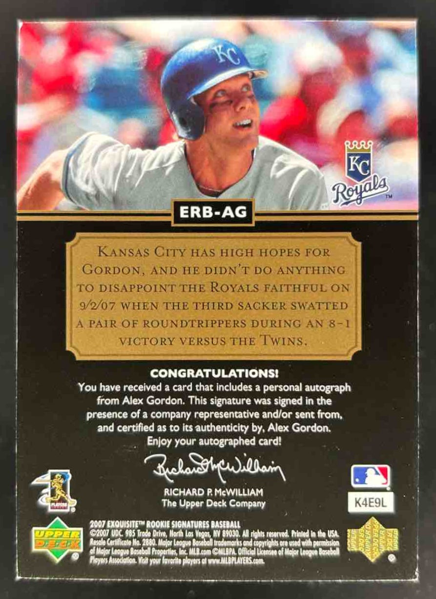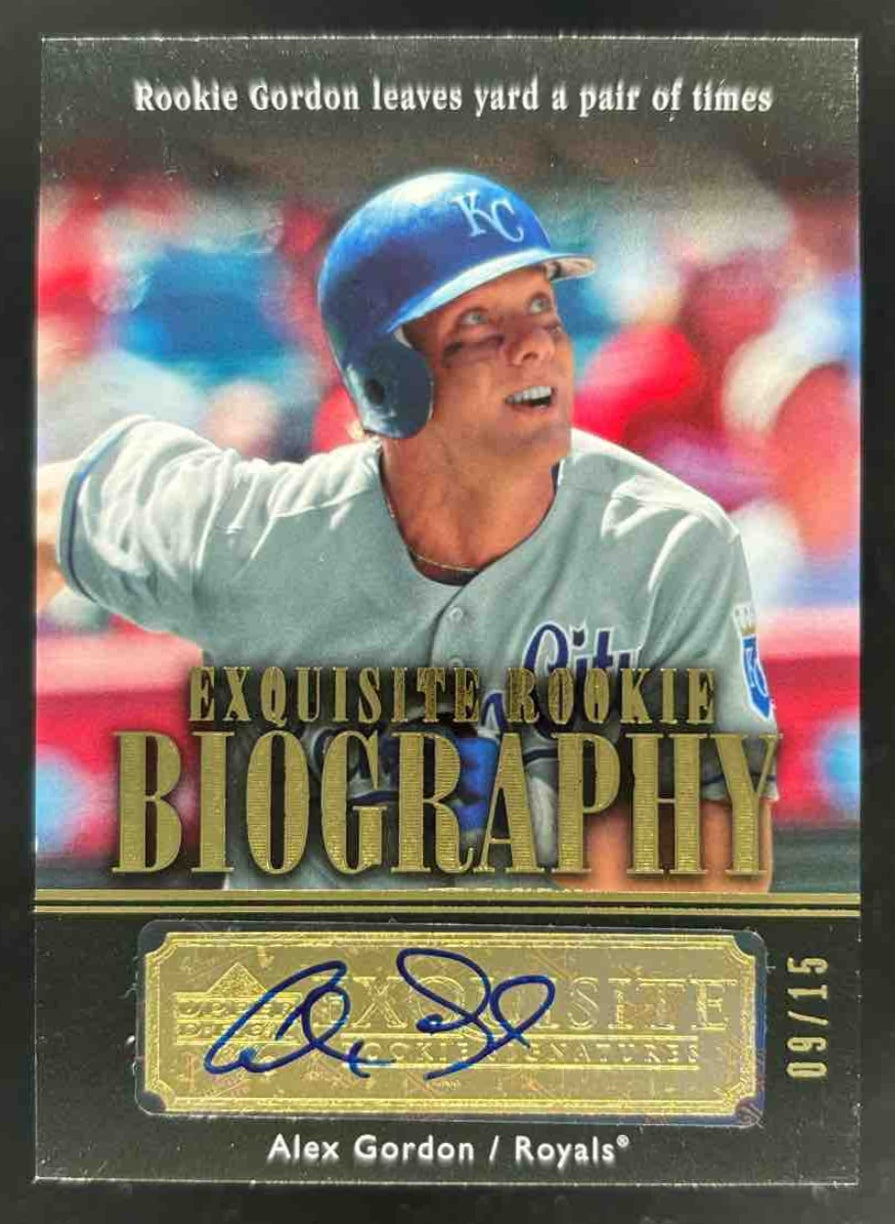 2007 Exquisite Collection Rookie Rookie Biography Gold Alex Gordon RC Auto /15