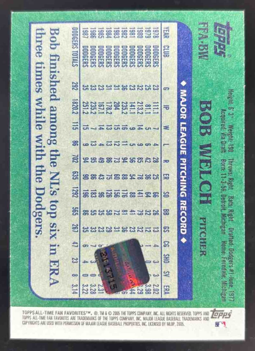 2005 Topps All-Time Fan Favorites Autographs #FFA-BW Bob Welch Auto