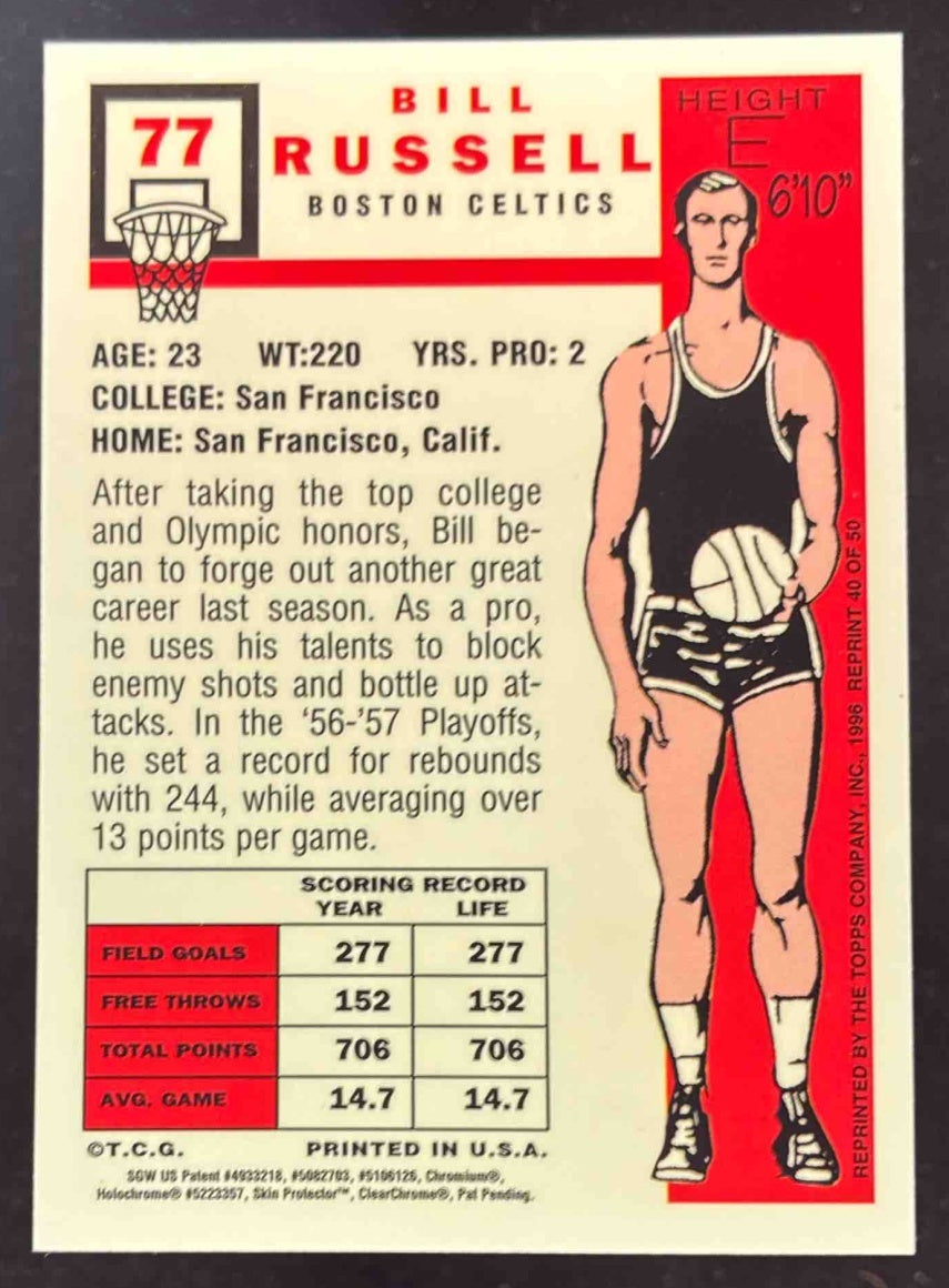 1996-97 Topps Finest Reprints #40 Bill Russell