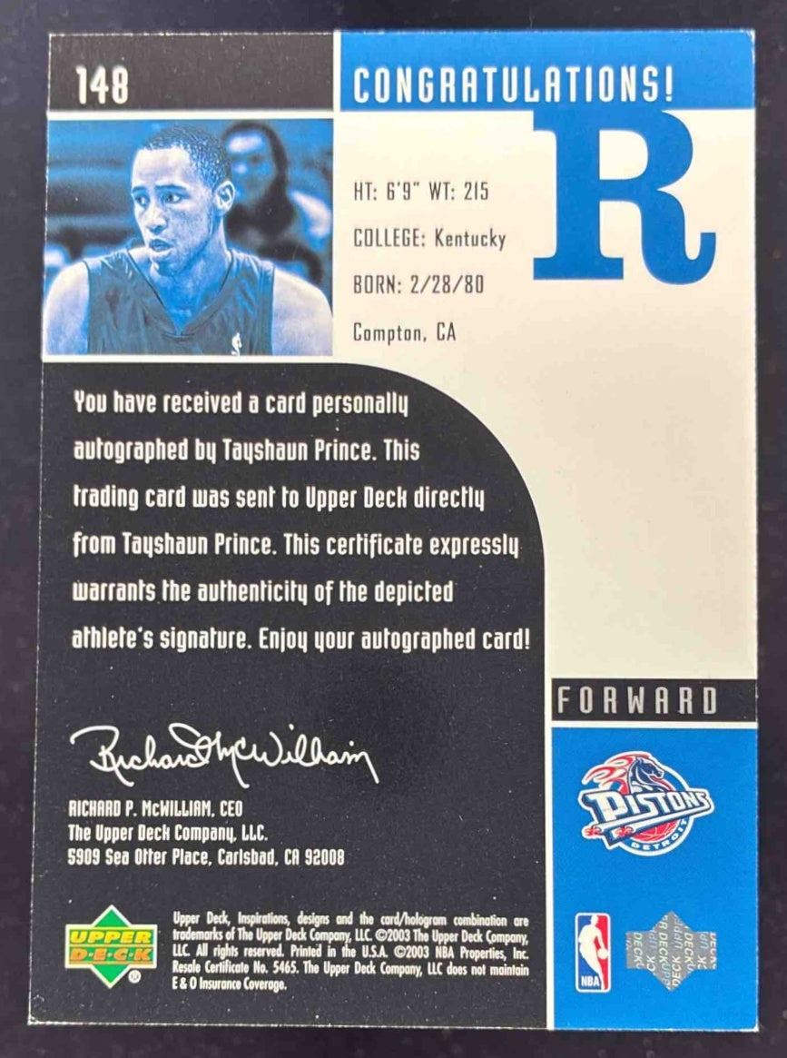 2002 Upper Deck Inspirations #148 Tayshaun Prince Antoine Walker RC Auto /1600