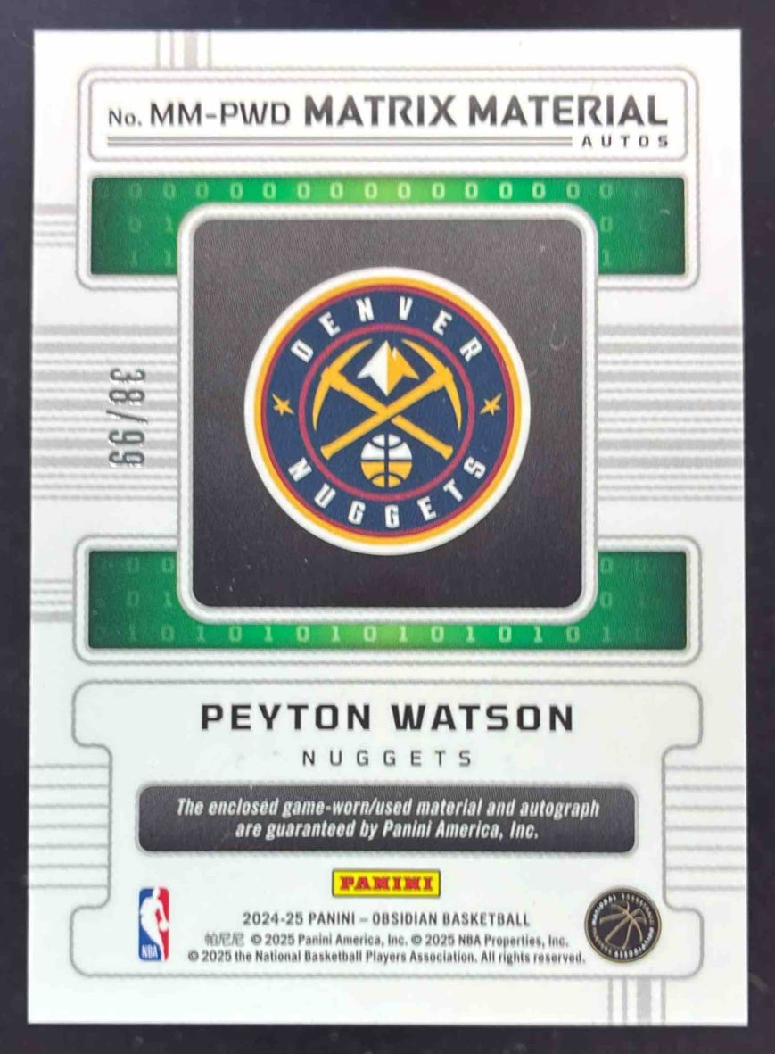 2024-25 Panini Obsidian Matrix Material Autos #MM-PWD Peyton Watson Auto /99