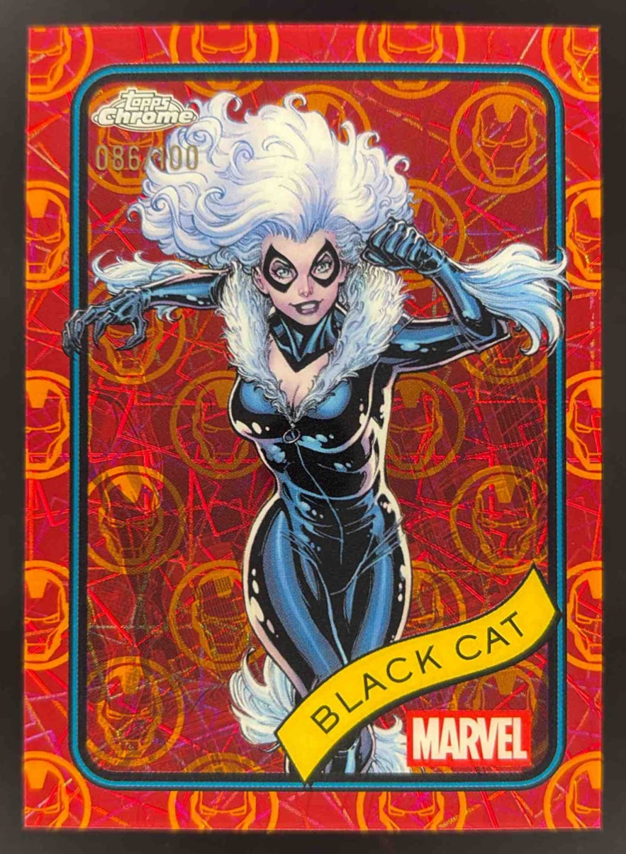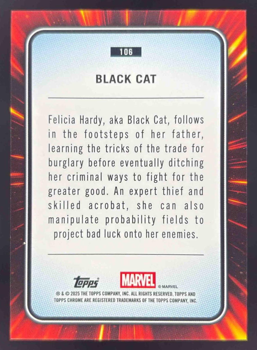 2025 Topps Chrome Marvel Iron Man Red & Gold Lazer Refractor #106 Black Cat /100