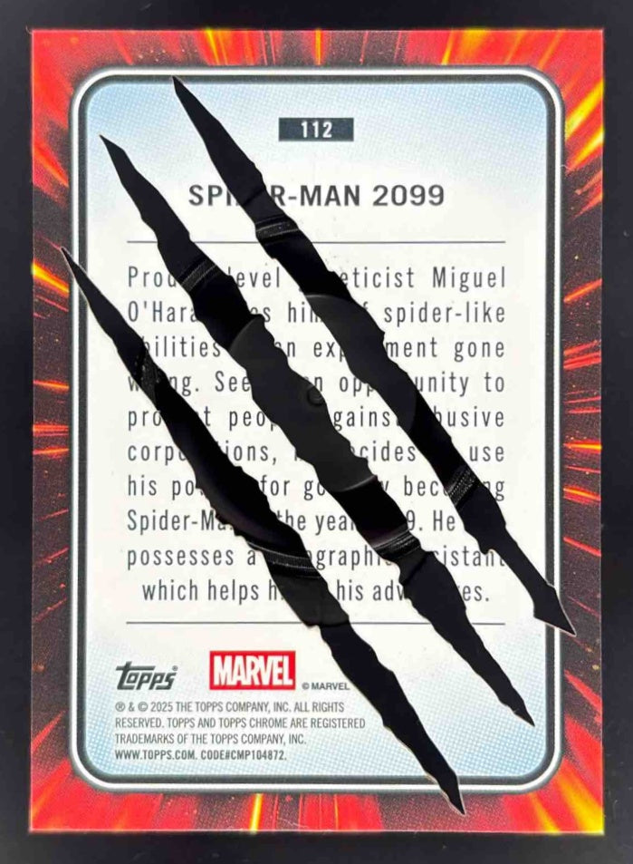 2025 Topps Chrome Marvel Clawed Chrome Refractor #112 Spider-Man 2099 /20