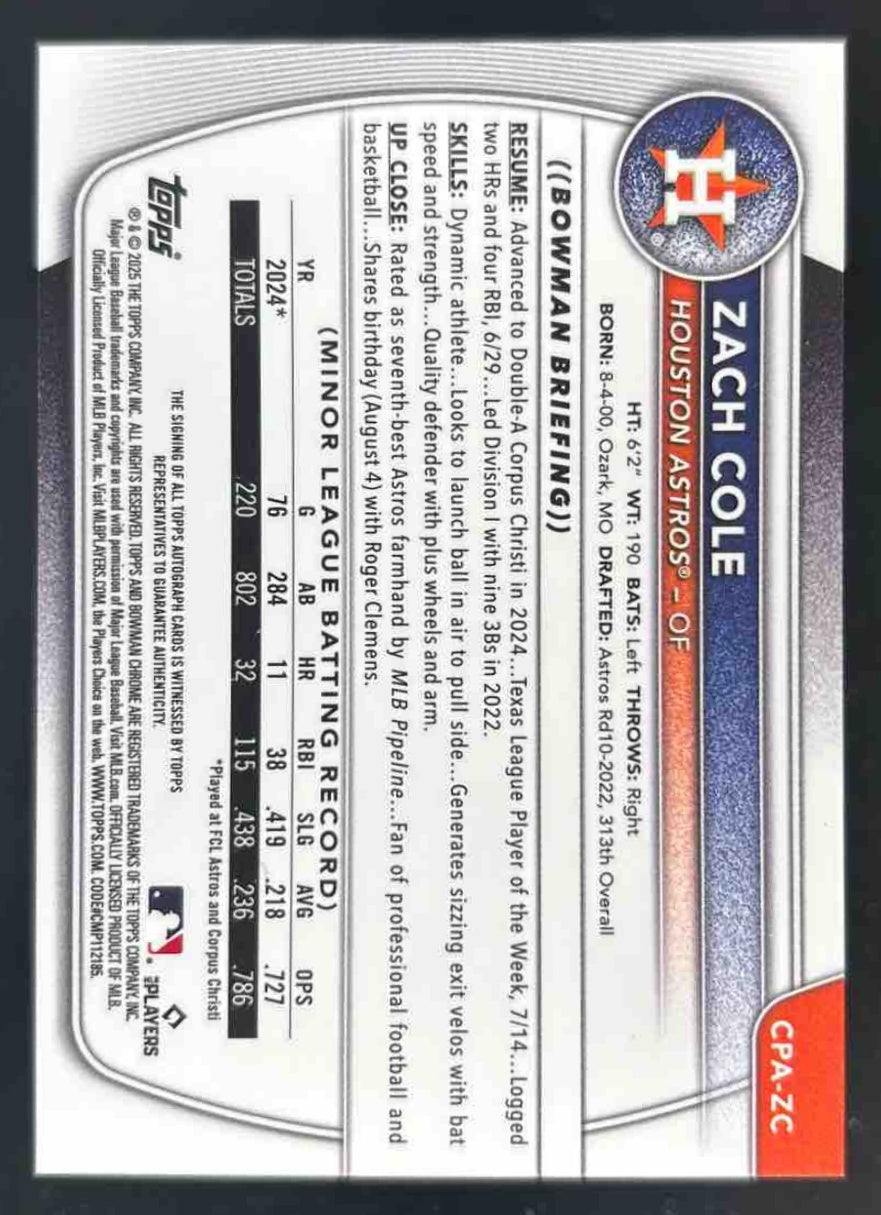 2025 Bowman Chrome Autograph #CPA-ZC Zach Cole RC Auto