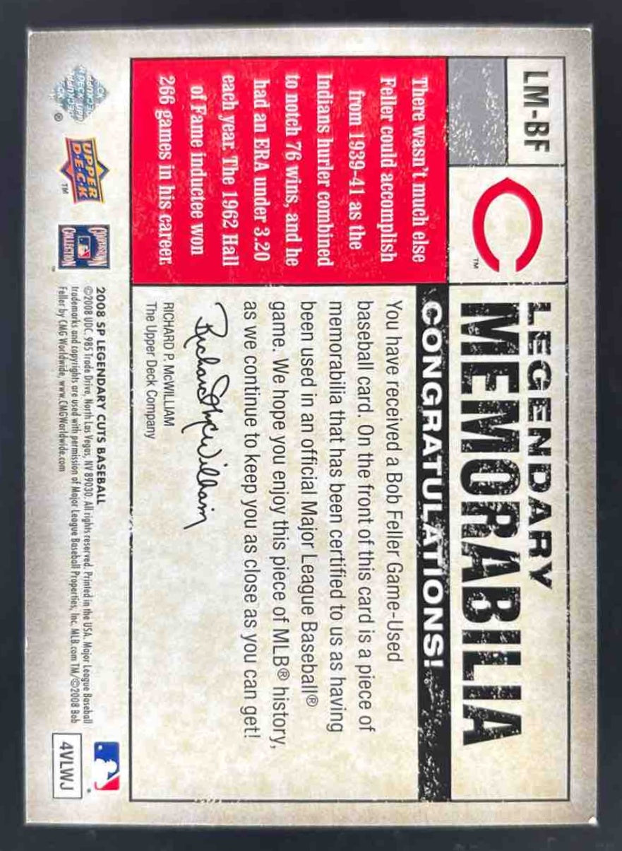 2008 SP Legendary Cuts Legendary Memorabilia Blue #LM-BF Bob Feller /99