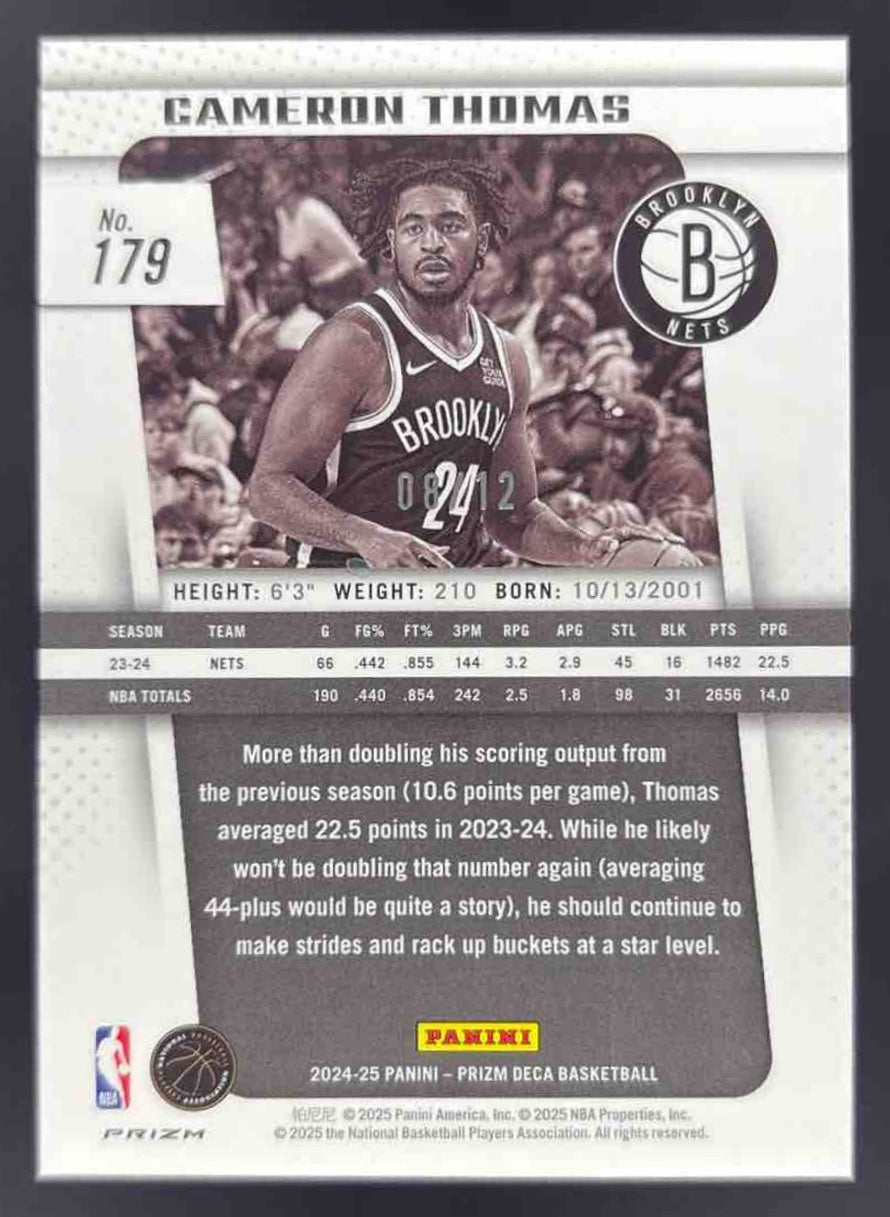 2024-25 Panini Prizm Deca Green Shimmer Prizms FOTL #179 Cameron Thomas /12