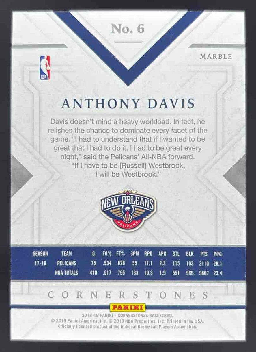 2018-19 Panini Cornerstones Marble #6 Anthony Davis /10