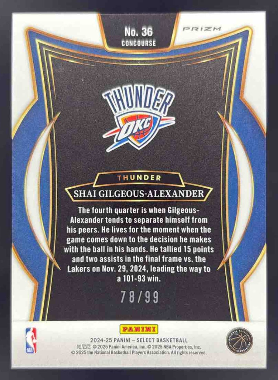 2024-25 Panini Select Concourse White Wave Prizm #36 Shai Gilgeous-Alexander /99