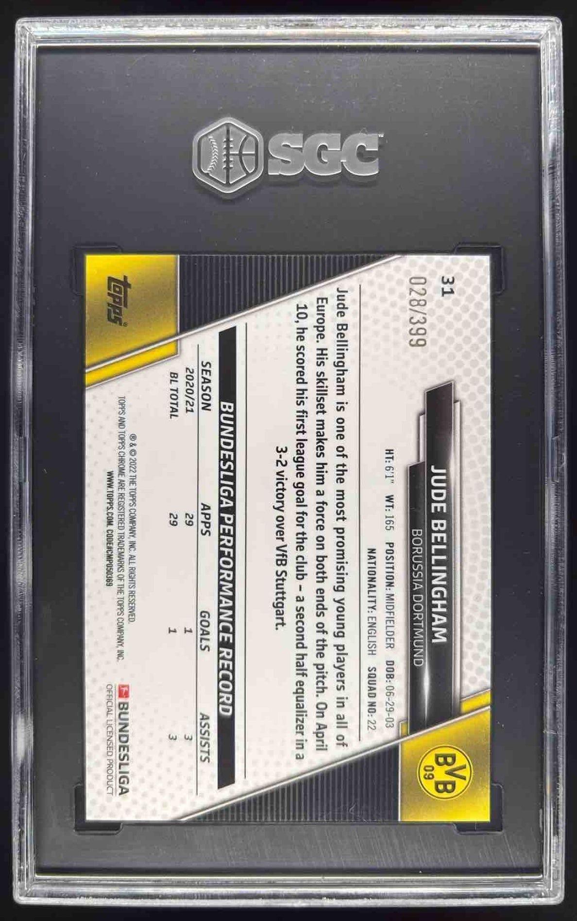 2021 Topps Chrome Bundesliga Magenta Refractors #31 Jude Bellingham /399 SGC 9.5