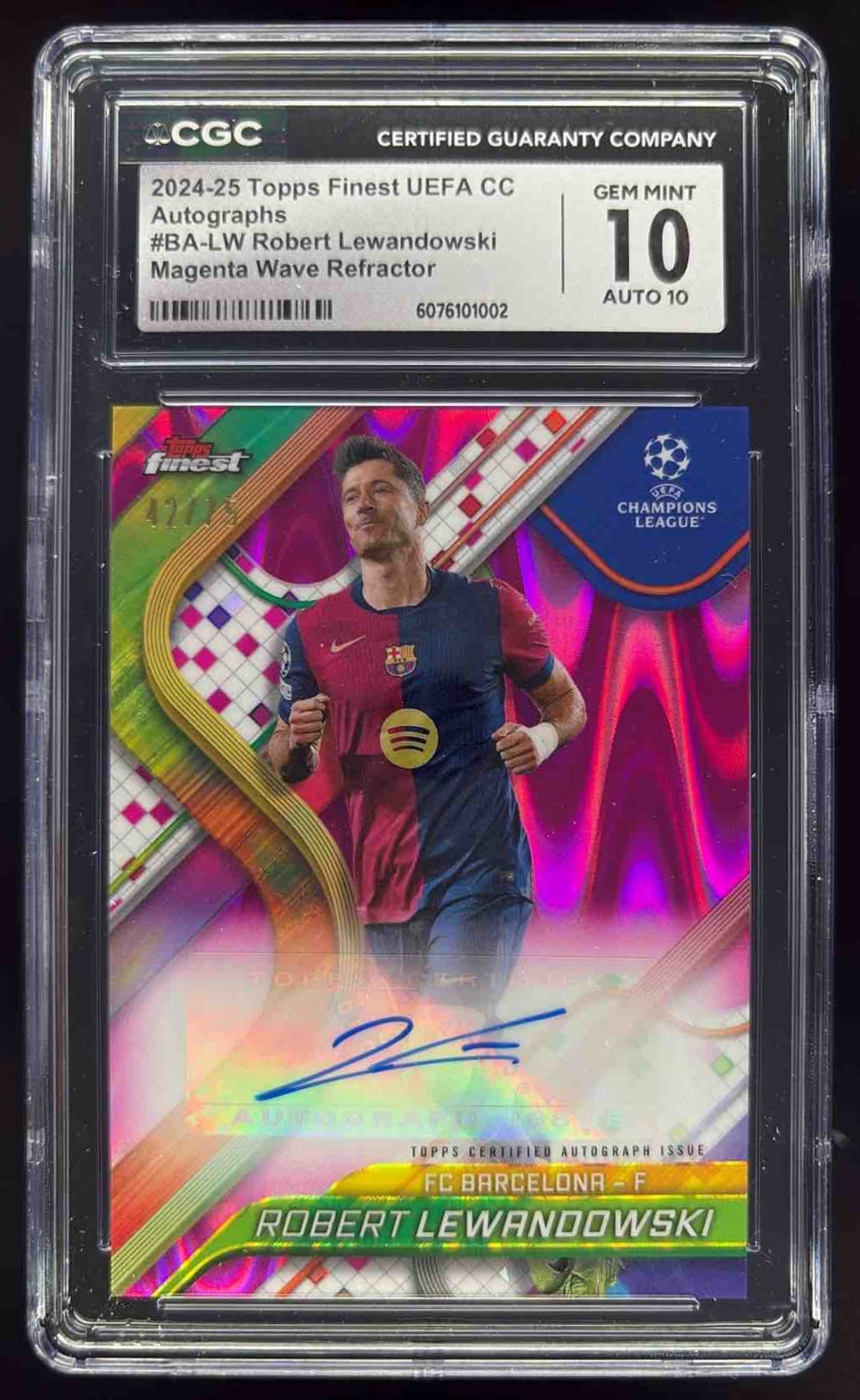 2024-25 Topps Finest Magenta Wave Refractor Robert Lewandowski Auto /75 CGC 10