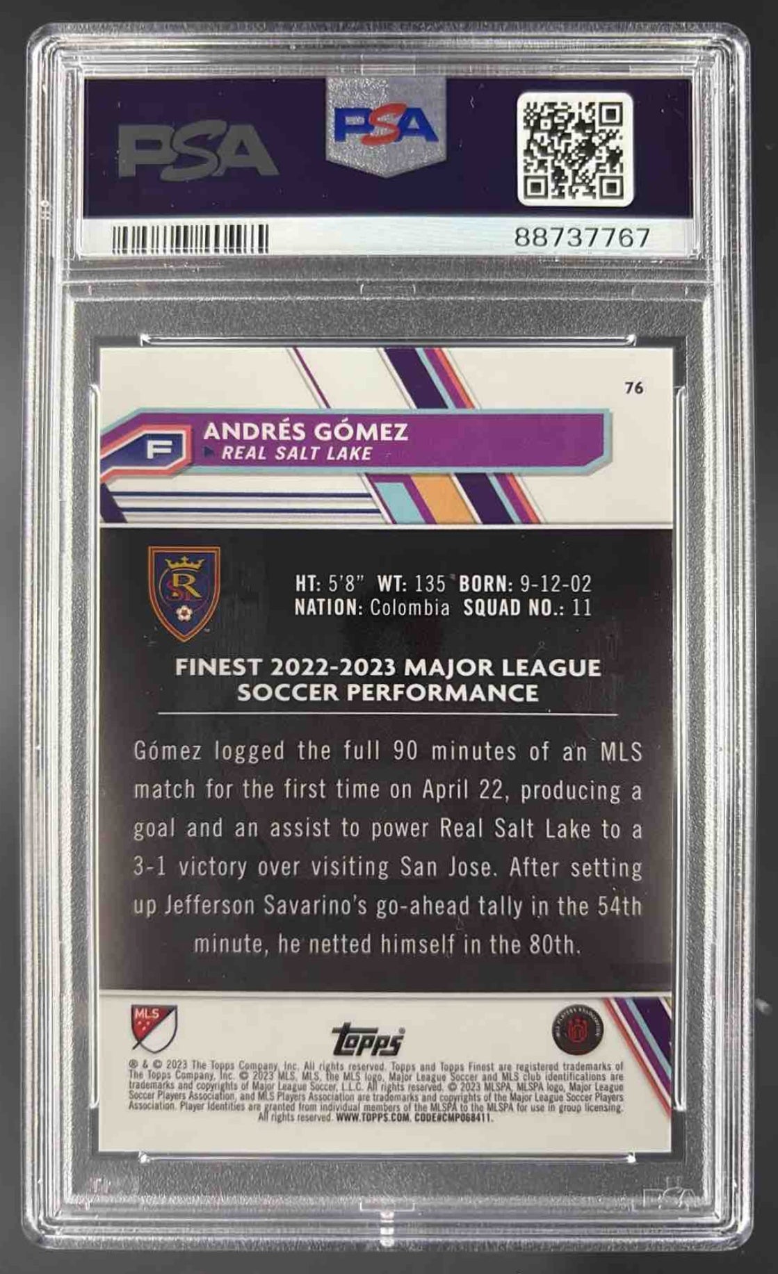 2023 Topps Finest MLS Orange Refractor #76 Andres Gomez RC /25 PSA 10