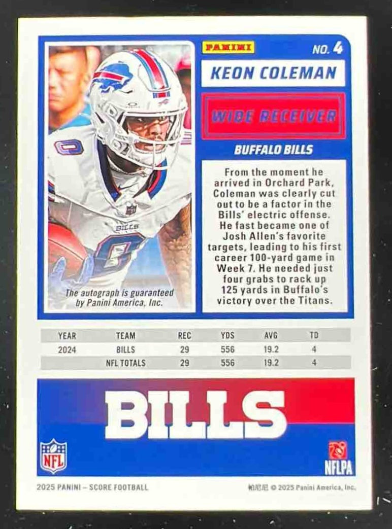 2025 Panini Score Signatures #4 Keon Coleman Auto