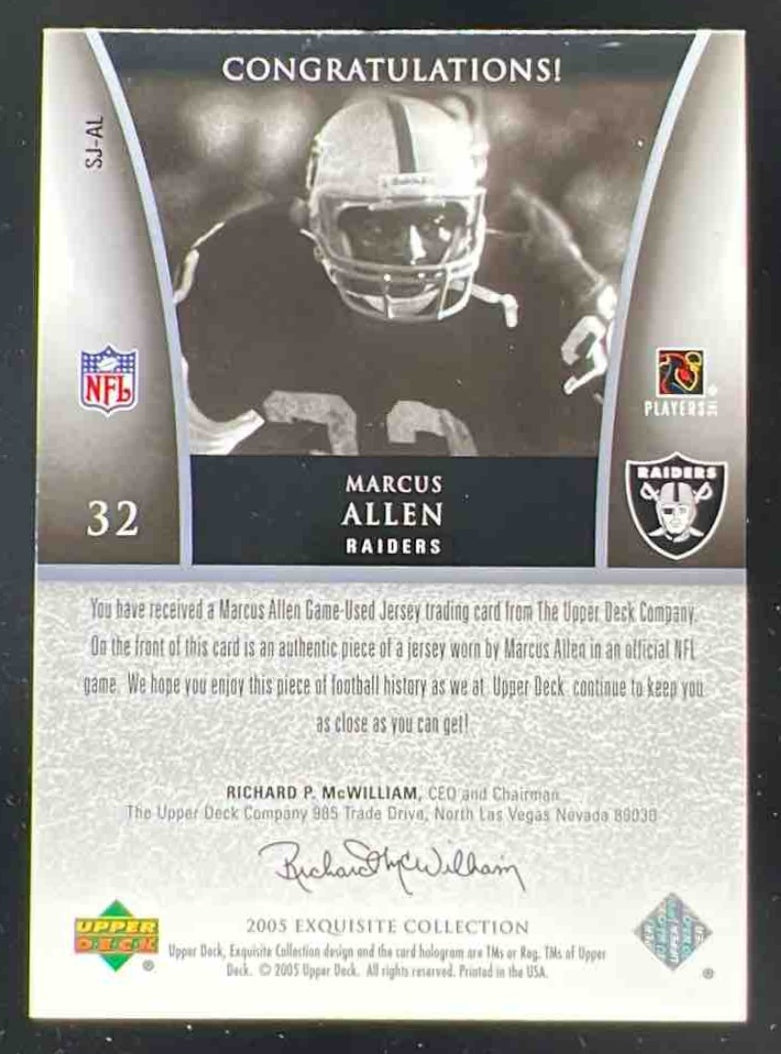 2005 Upper Deck Exquisite Collection Super Jersey Silver #SJ-AL Marcus Allen /50