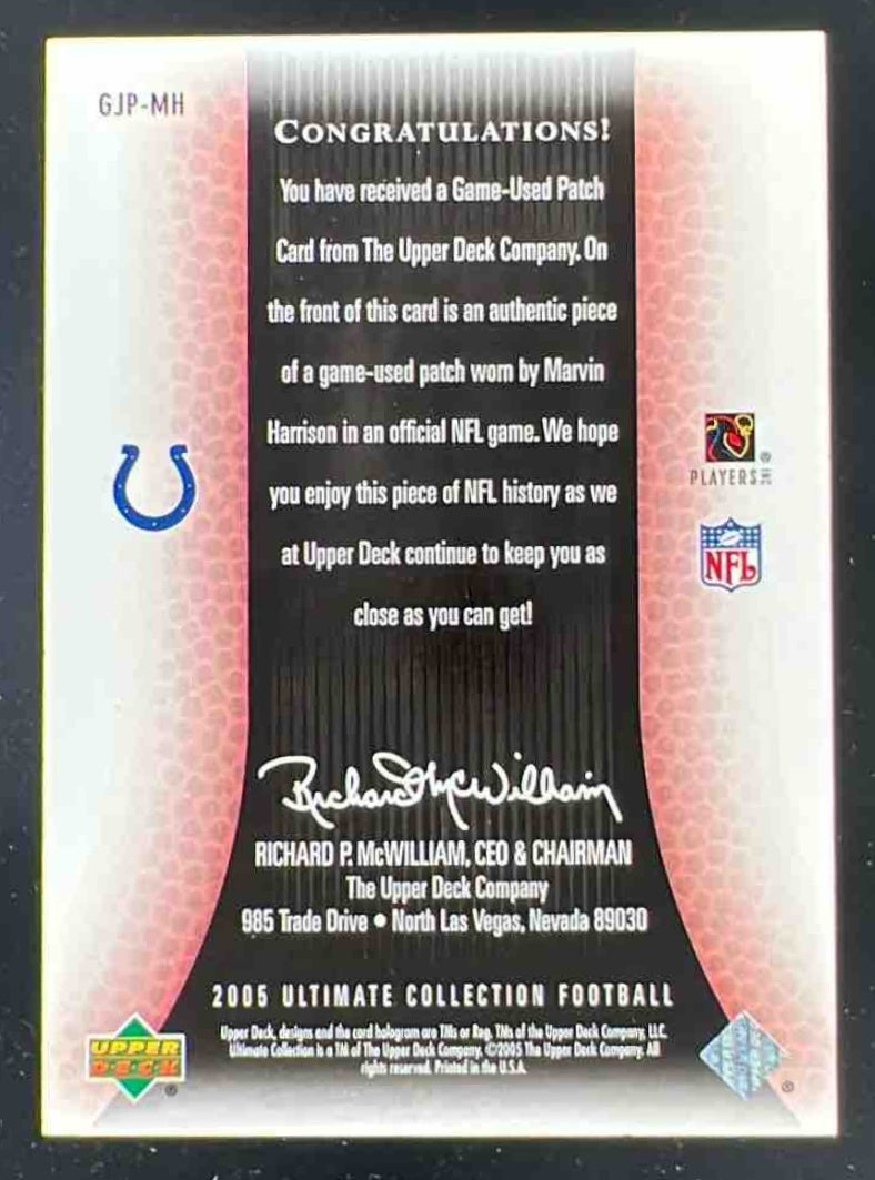 2005 Ultimate Collection Game Jersey Patches Gold #GJP-MH Marvin Harrison /35