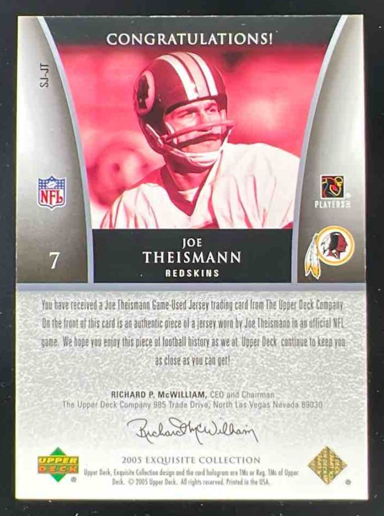 2005 Upper Deck Exquisite Collection Super Jersey Gold #SJ-JT Joe Theismann /30