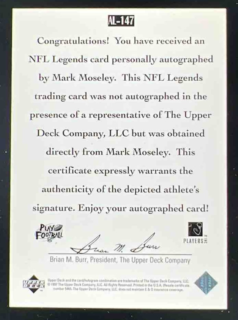 1997 Upper Deck Legends Autographs #AL-147 Mark Moseley Auto