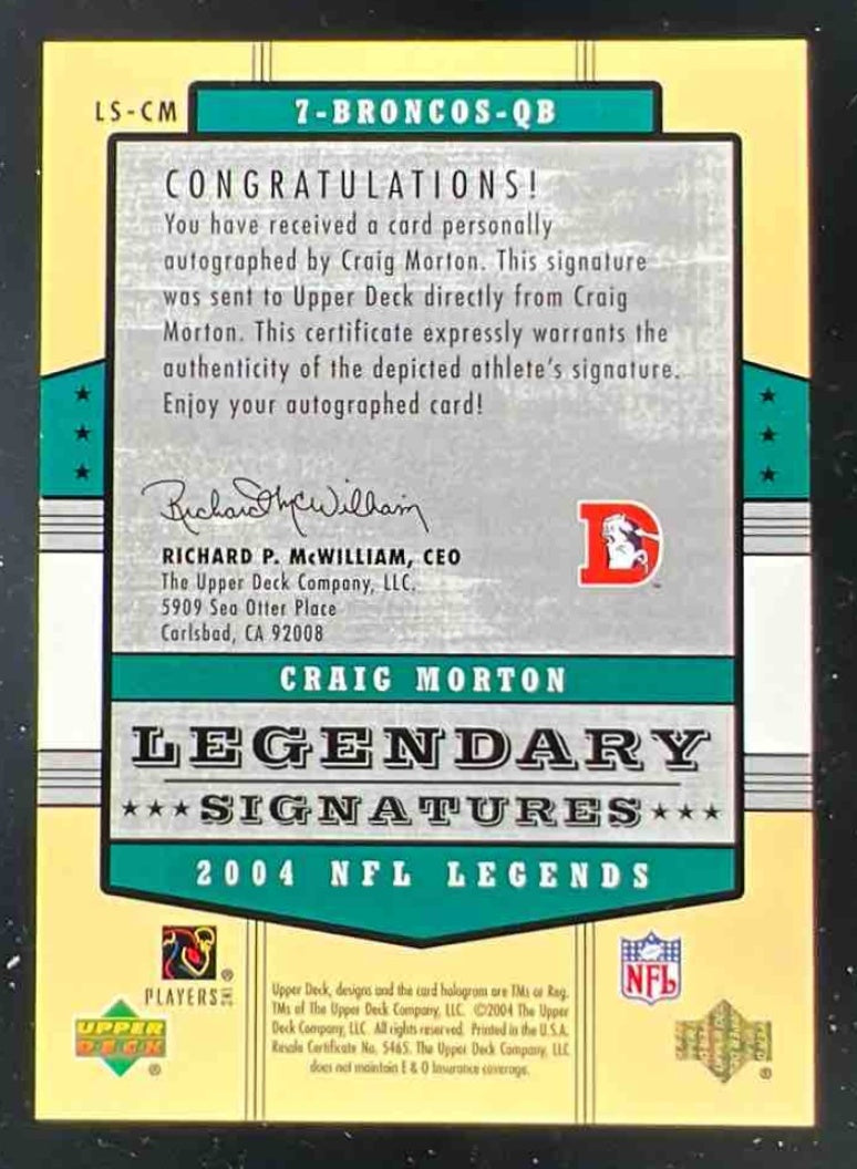2004 Upper Deck Legends Legendary Signatures #LS-CM Craig Morton Auto