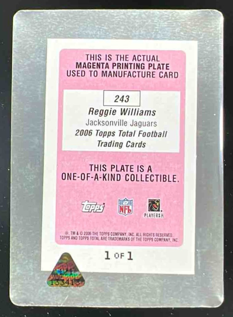 2006 Topps Total Printing Plates Magenta #243 Reggie Williams 1/1