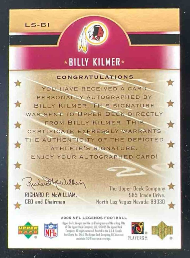 2005 Upper Deck Legends Legendary Signatures #LS-BI Billy Kilmer Auto