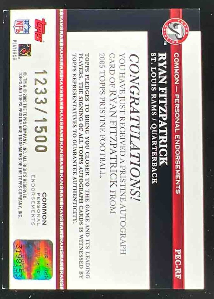 2005 Topps Pristine Personal Endorsements #PEC-RF Ryan Fitzpatrick RC Auto /1500