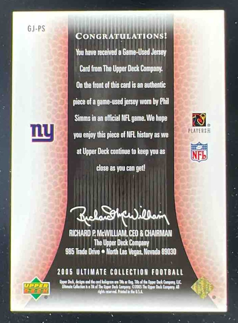 2005 Upper Deck Ultimate Collection Game Jersey Gold #GJ-PS Phil Simms /50