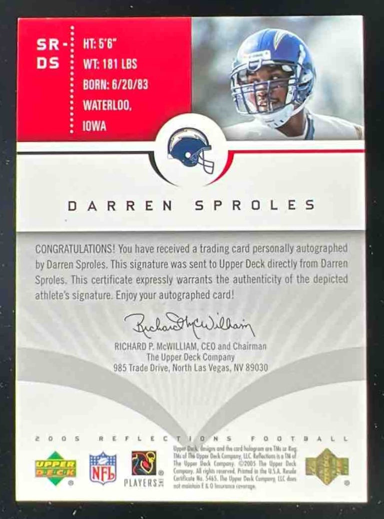 2005 UD Reflections Signature Reflections Red #SR-DS Darren Sproles RC Auto