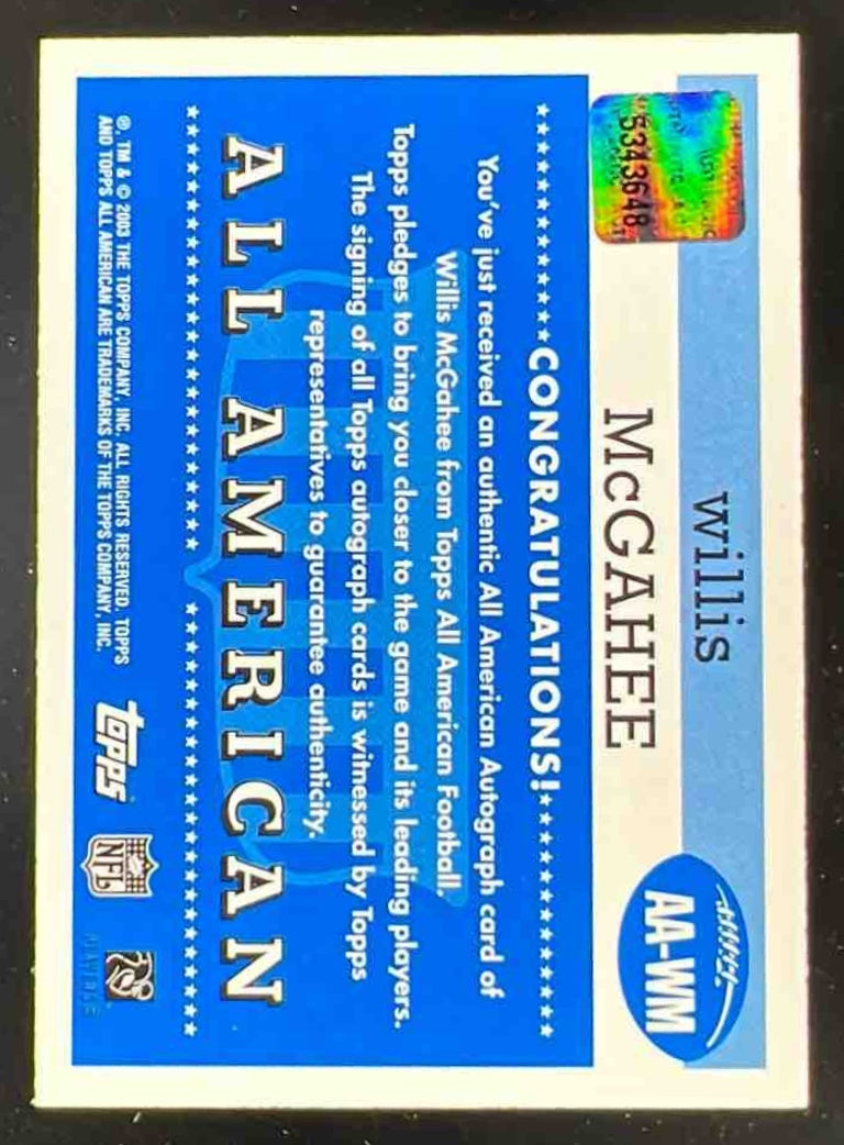 2003 Topps All American Autographs #AA-WM Willis McGahee RC Auto