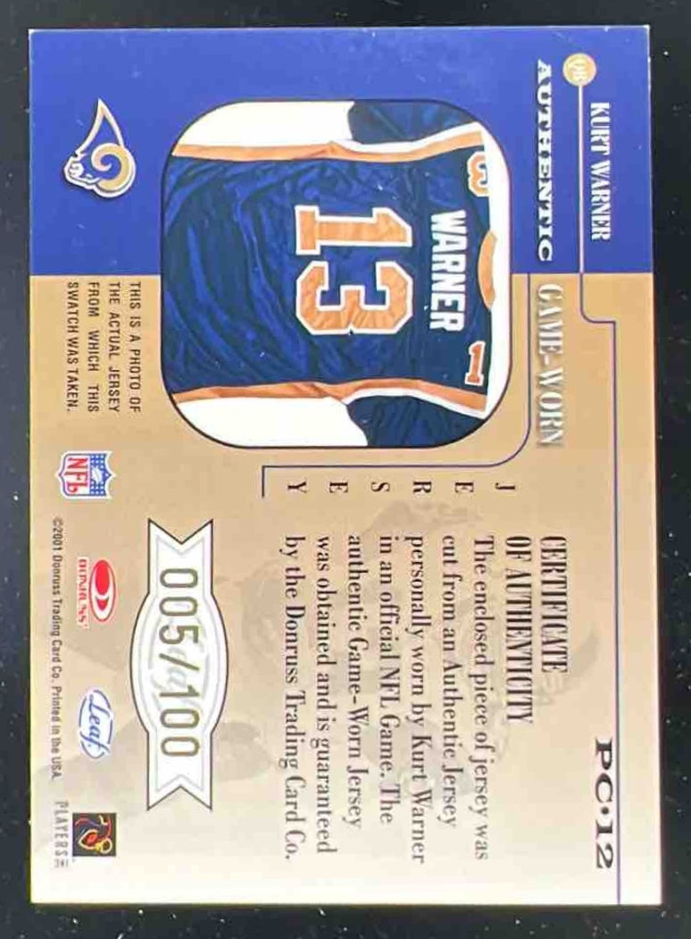 2001 Leaf Rookies & Stars Player's Collection #PC-12 Kurt Warner /100