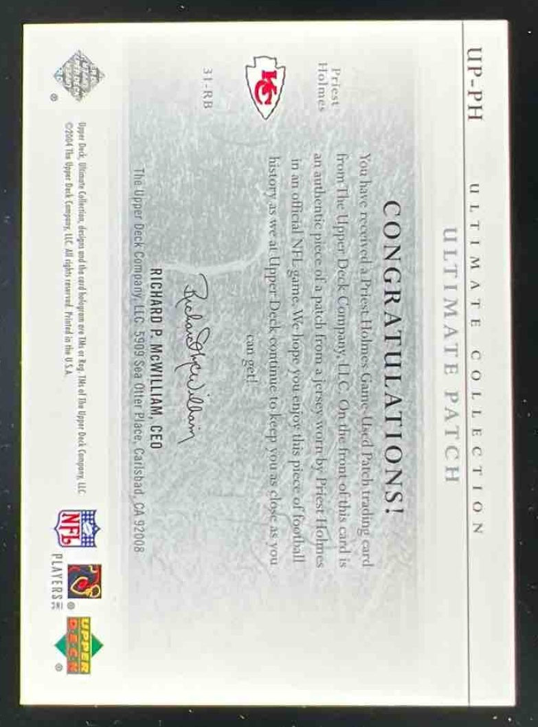 2004 Upper Deck Ultimate Collection Game Jersey Patches #UPPH Priest Holmes /150