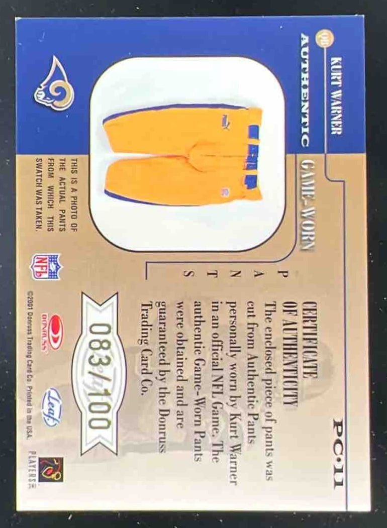 2001 Leaf Rookies & Stars Player's Collection #PC-11 Kurt Warner /100