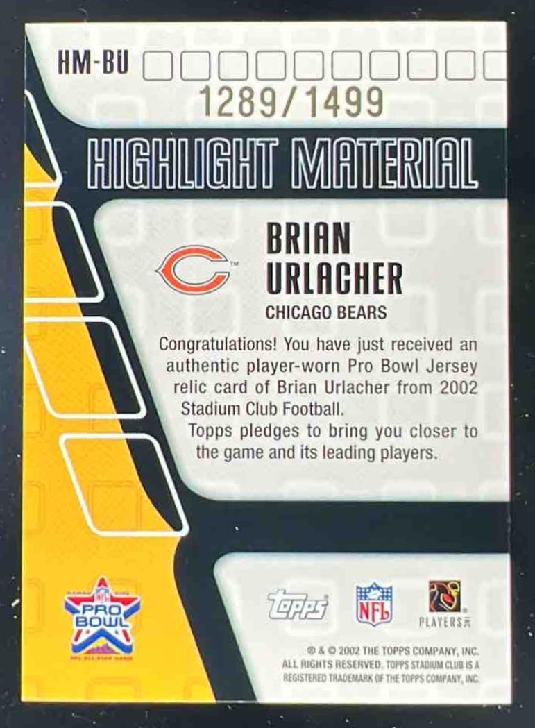 2002 Topps Stadium Club Highlight Material #HM-BU Brian Urlacher /1499